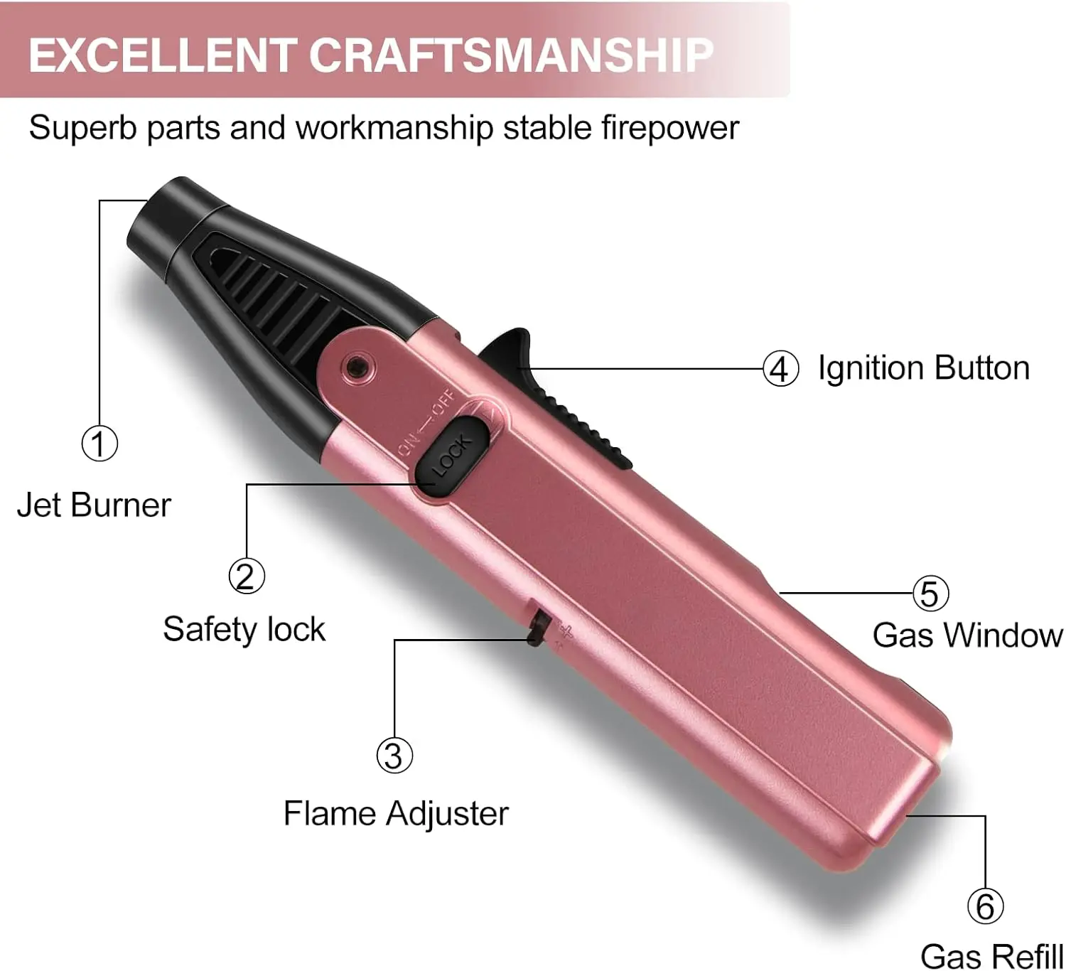 Butane Torch Lighter – Adjustable Jet Flame, Windproof, Refillable Gas for Candle, Grill, BBQ, Fireworks & More