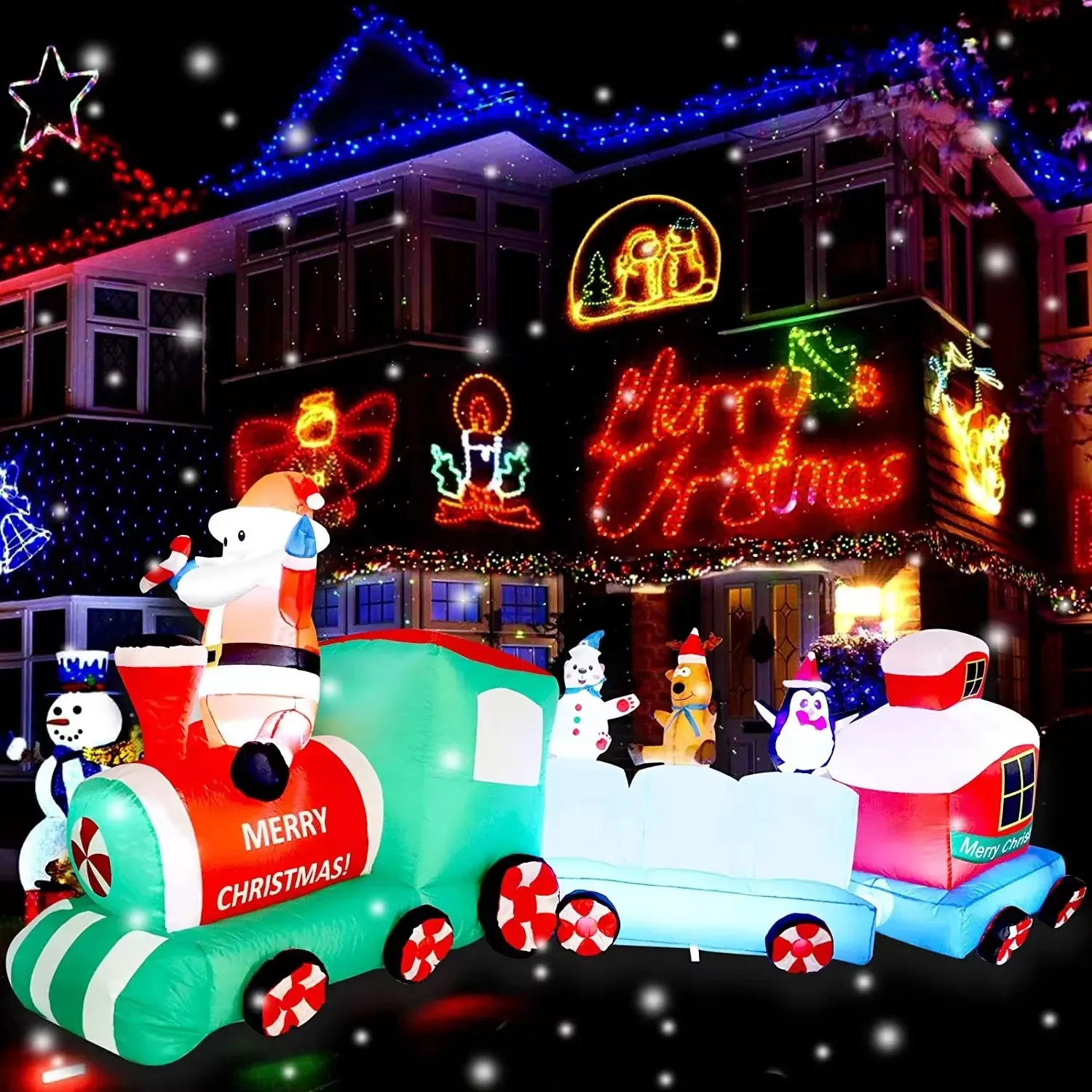 All aboard the Christmas spirit! This 2.7M Giant Christmas Inflatable Train with LED Lights is the perfect addition to your holiday decor, creating a magical display that lights up any festive occasion. Featuring vibrant colors and whimsical details, this inflatable train delights both children and adults alike, adding a touch of nostalgia and joy to your celebrations. Designed for both indoor and outdoor use, it’s weather-resistant and easy to set up, ensuring a hassle-free decorating experience. Whether for a holiday party or just spreading cheer in your neighborhood, this inflatable train is sure to be the star of the season!