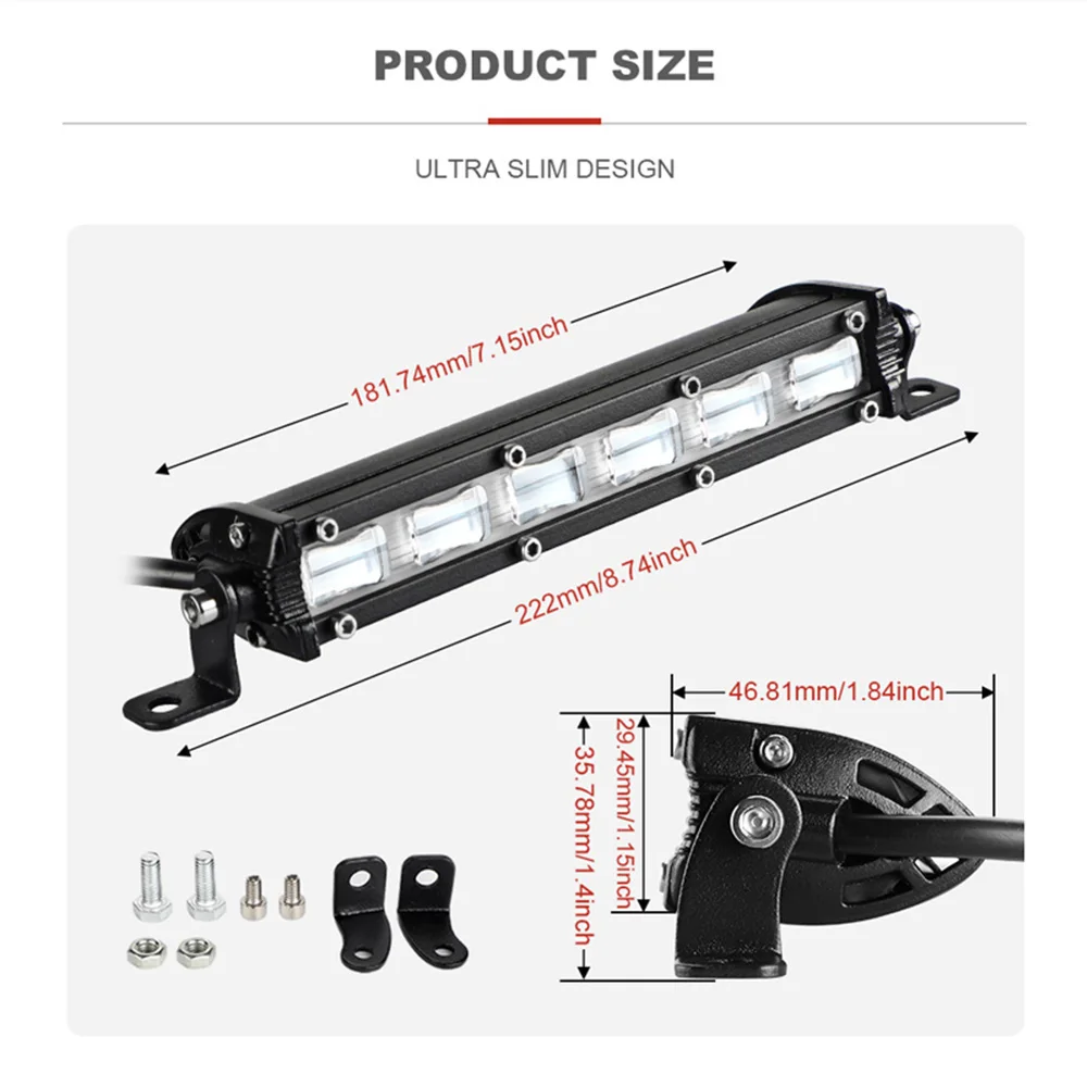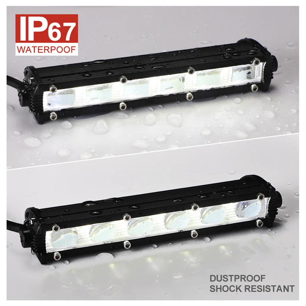 Illuminate your path with this powerful 7-inch LED work light designed for off-road vehicles like tractors, trucks, 4WDs, ATVs, UTVs, and UAZs. Featuring a 6D lens, this light bar ensures exceptional brightness and a broad beam pattern, making it ideal for rugged terrains and low-light conditions. Built to withstand tough environments, this LED light bar is waterproof, shockproof, and designed for both 12V and 24V systems, providing versatility and durability no matter where your journey takes you.