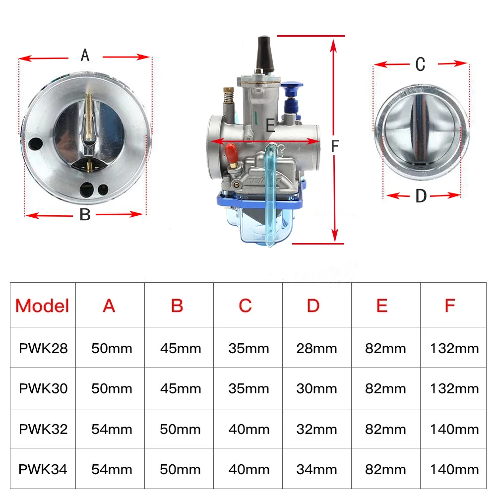 - Compatible with Keihin PWK series carburetors in 28, 30, 32, and 34 mm sizes