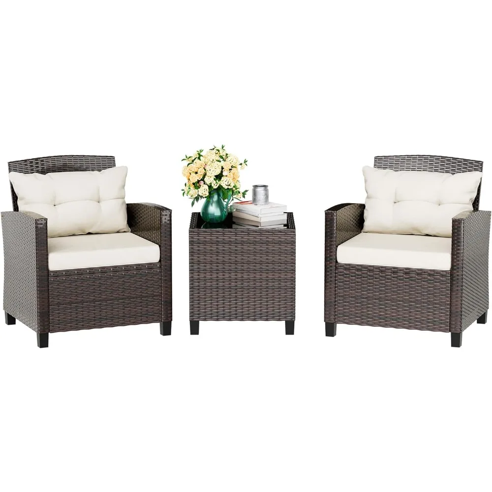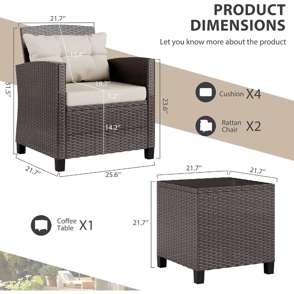Transform your outdoor space into a cozy retreat with our 3-Piece Patio Furniture Outdoor Set. This elegant wicker rattan bistro set features two comfortable chairs and a stylish table, perfect for enjoying your morning coffee or entertaining guests. Crafted from durable, weather-resistant materials, this patio set is designed to withstand the elements while providing maximum comfort and style. The lightweight design makes it easy to rearrange your patio or porch, while the sleek rattan finish adds a touch of sophistication to any outdoor decor. Ideal for small spaces, this set is perfect for balconies, gardens, or patios, offering a charming spot to relax and unwind.