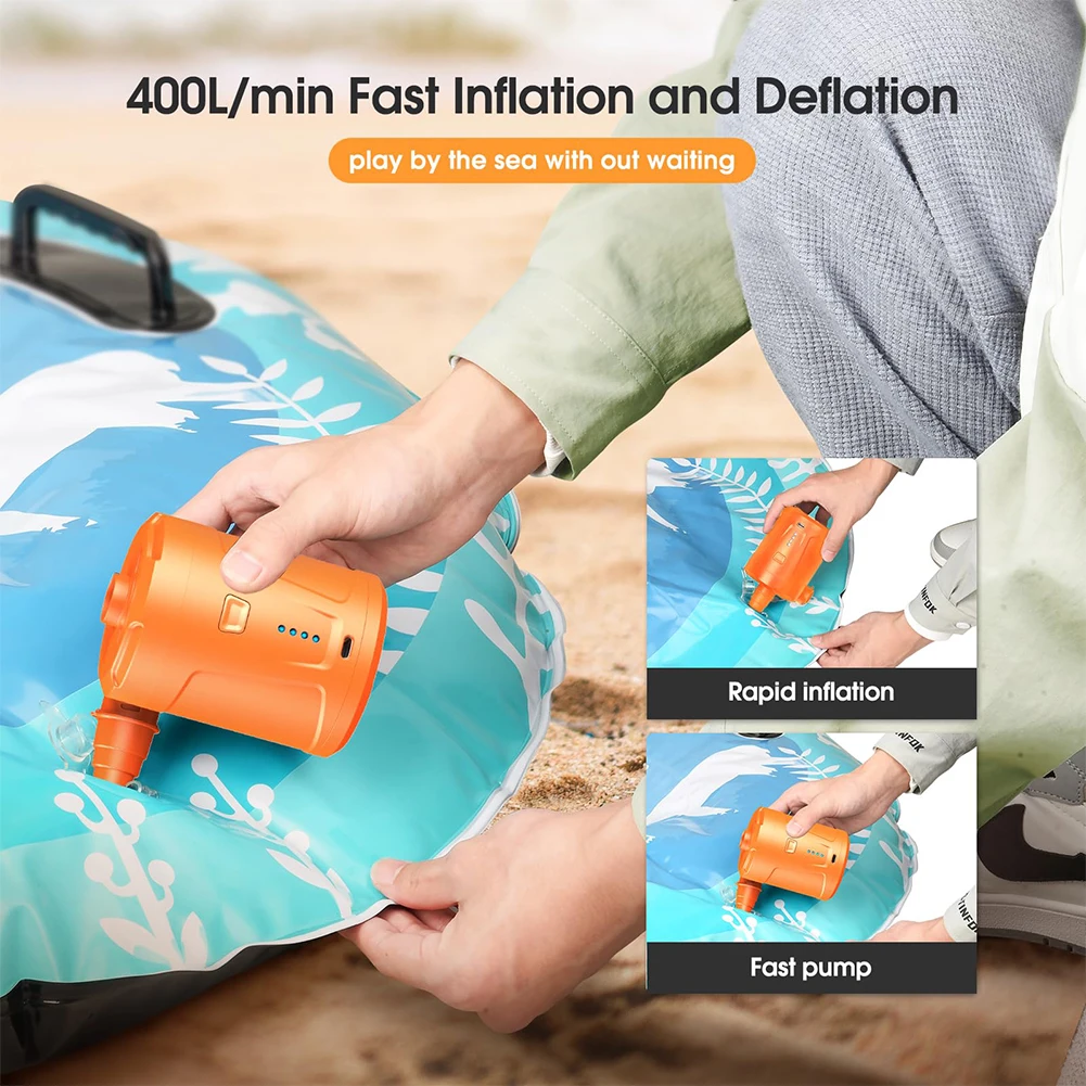 Effortlessly inflate your swimming rings, rubber boats, and other inflatables with the Wireless Inflatable Pump. This portable air pump is designed for convenience with its 5000mAh rechargeable battery, allowing you to inflate on the go without being tethered to a power source. The compact and lightweight design makes it easy to carry in your beach bag, camping gear, or car. Equipped with USB charging capability, you can quickly recharge it anywhere. Whether you’re prepping for a day at the beach, a pool party, or a weekend getaway, this wireless inflator ensures you’re ready for fun in no time!